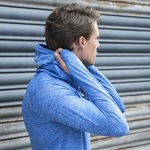 - Reflective tab on back of neck helps keep ear phone cords in place. Toggled hood.